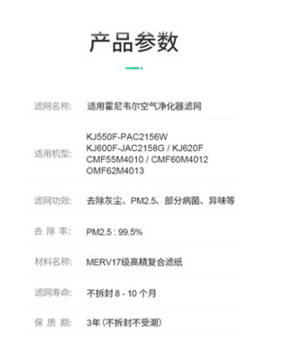 Adapted Honeywell air purifier strainer KJ550F-PAC2156W filter element KJ600F-JAC2158G