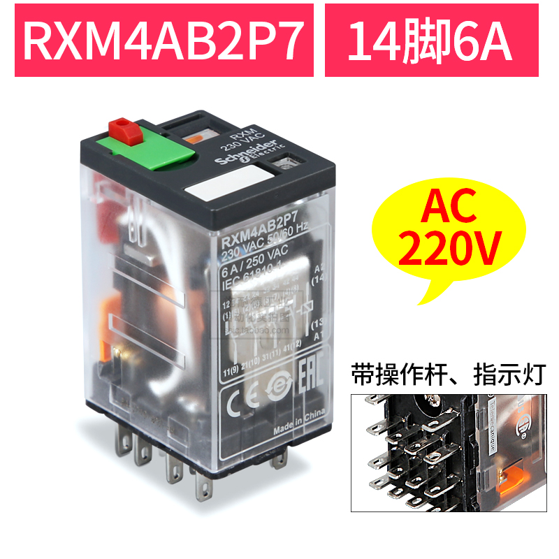 Schneider intermediate relay AC220V AC RXM4AB2P7 6A 14 feet with lamp