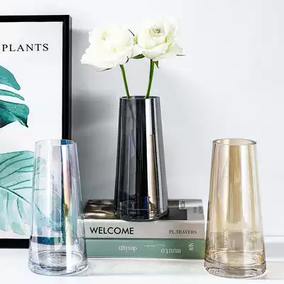 Light luxury Nordic glass fresh Vase ornaments modern simple living room transparent color hydroponic Flower Arrangement Vase