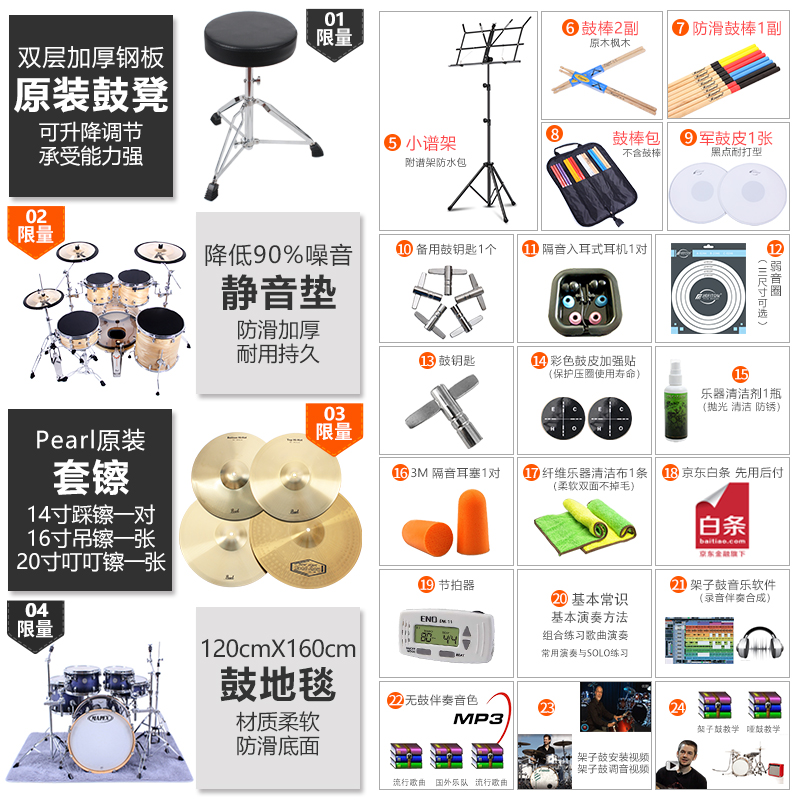 pearl pearl tour frame sub-drum adults starter 5 drums 3 cymbal tablets children beginner examination professional jazz drums