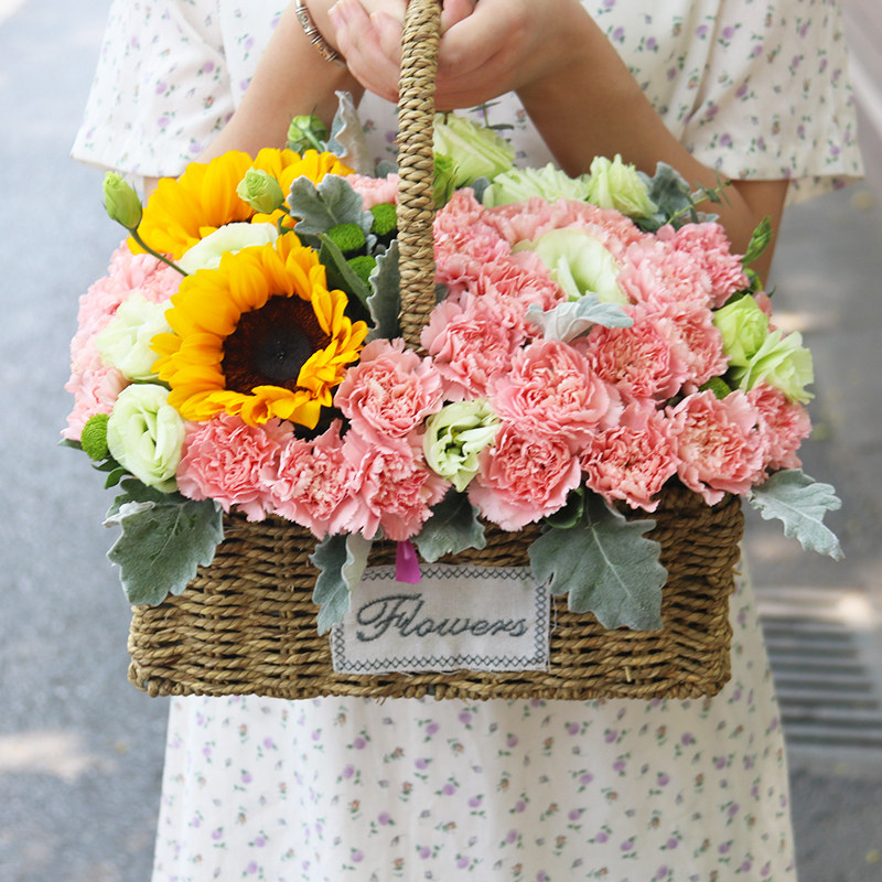 (Warm wishes) Carnation rose hand-held basket √ to send to the mother