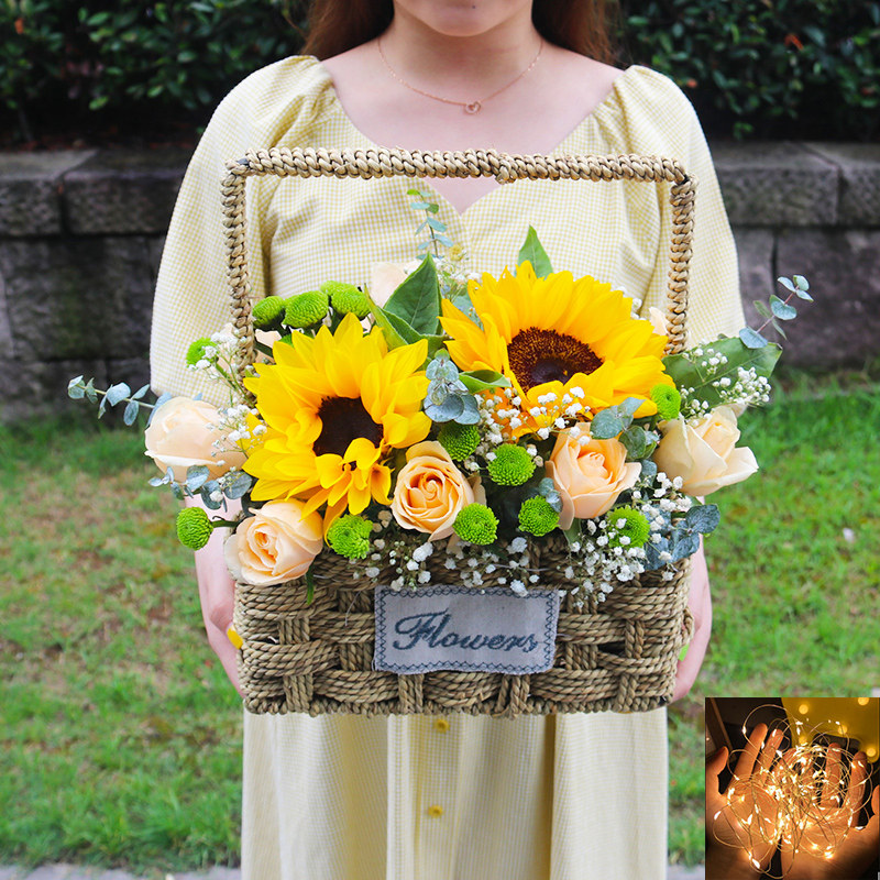 (Years quiet) Sunflower mixed with champagne hand basket