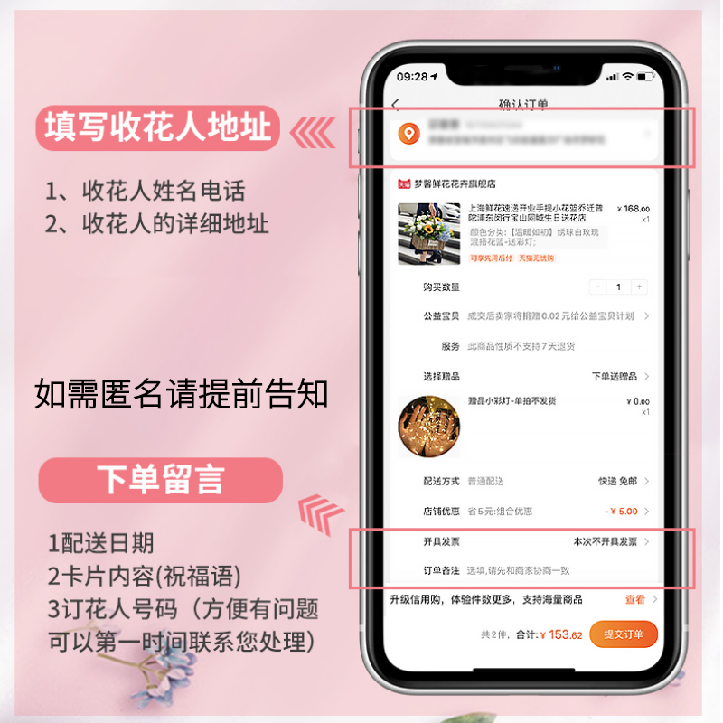 Hand-held flower basket rose flower express Shanghai Beijing Hangzhou Hefei birthday opening housewarming nationwide distribution