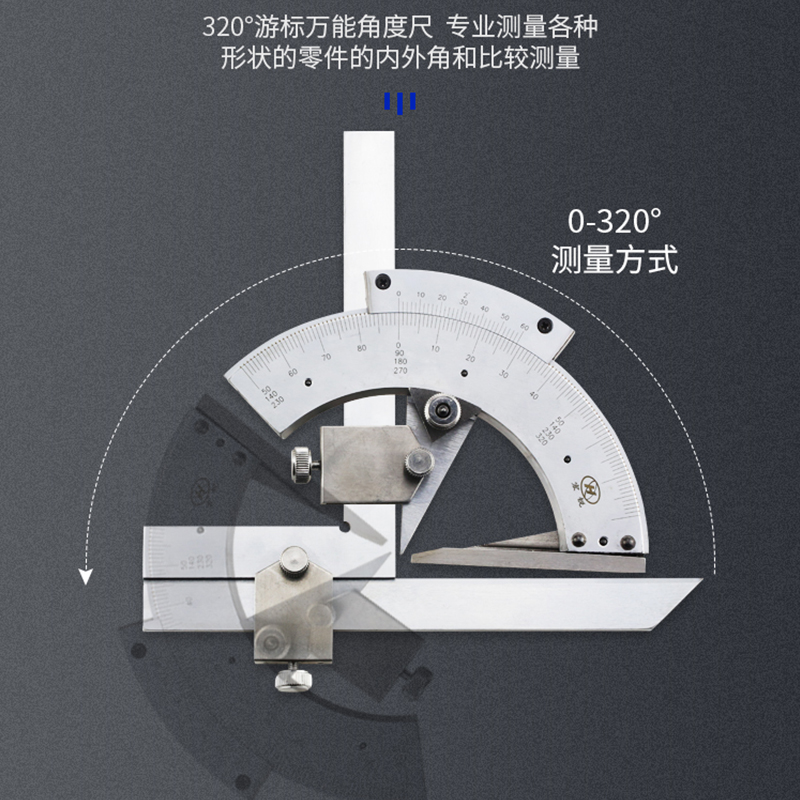 Shanghai middle amount universal angle ruler 0-320 degrees Protractor angle ruler cursor universal angle ruler angle measurement
