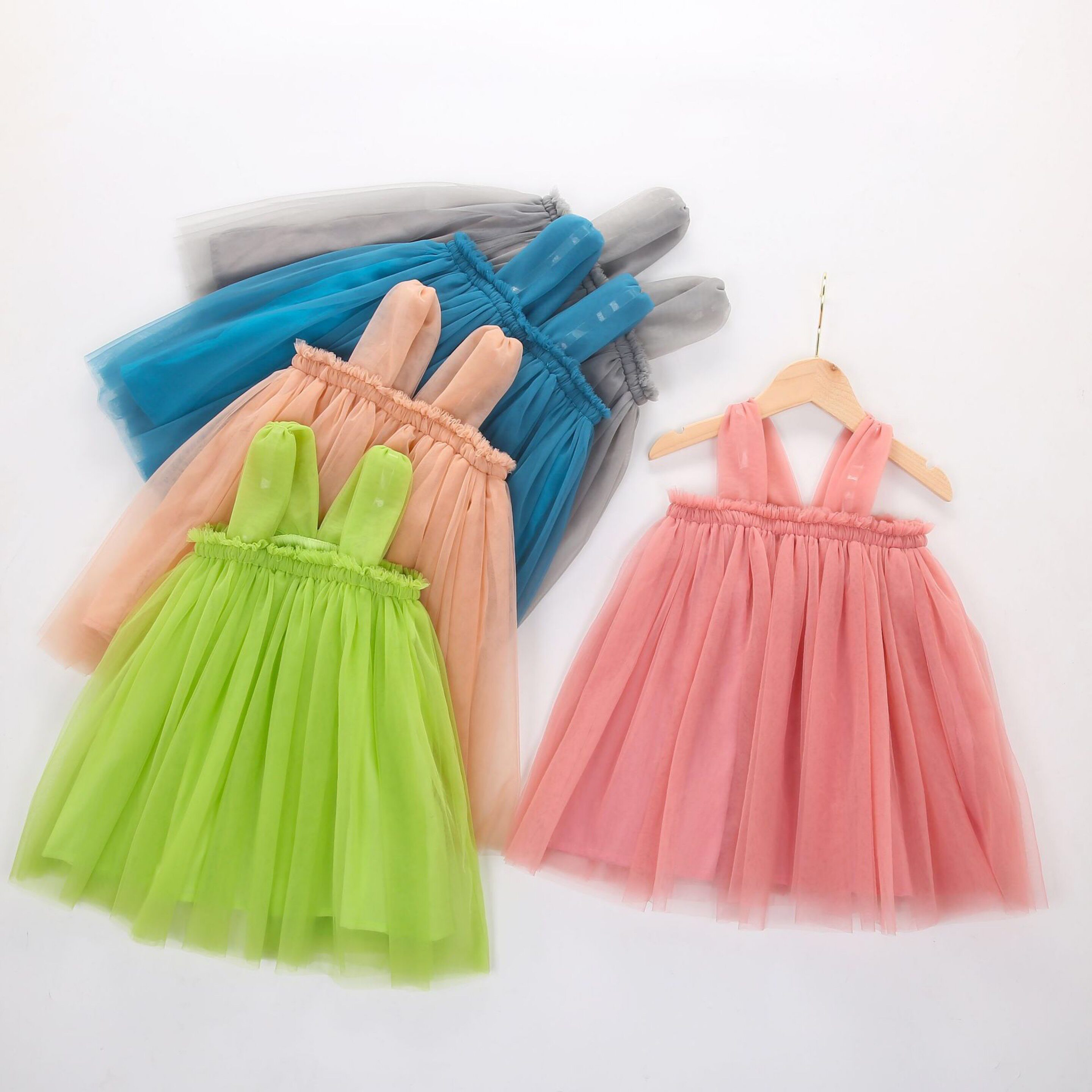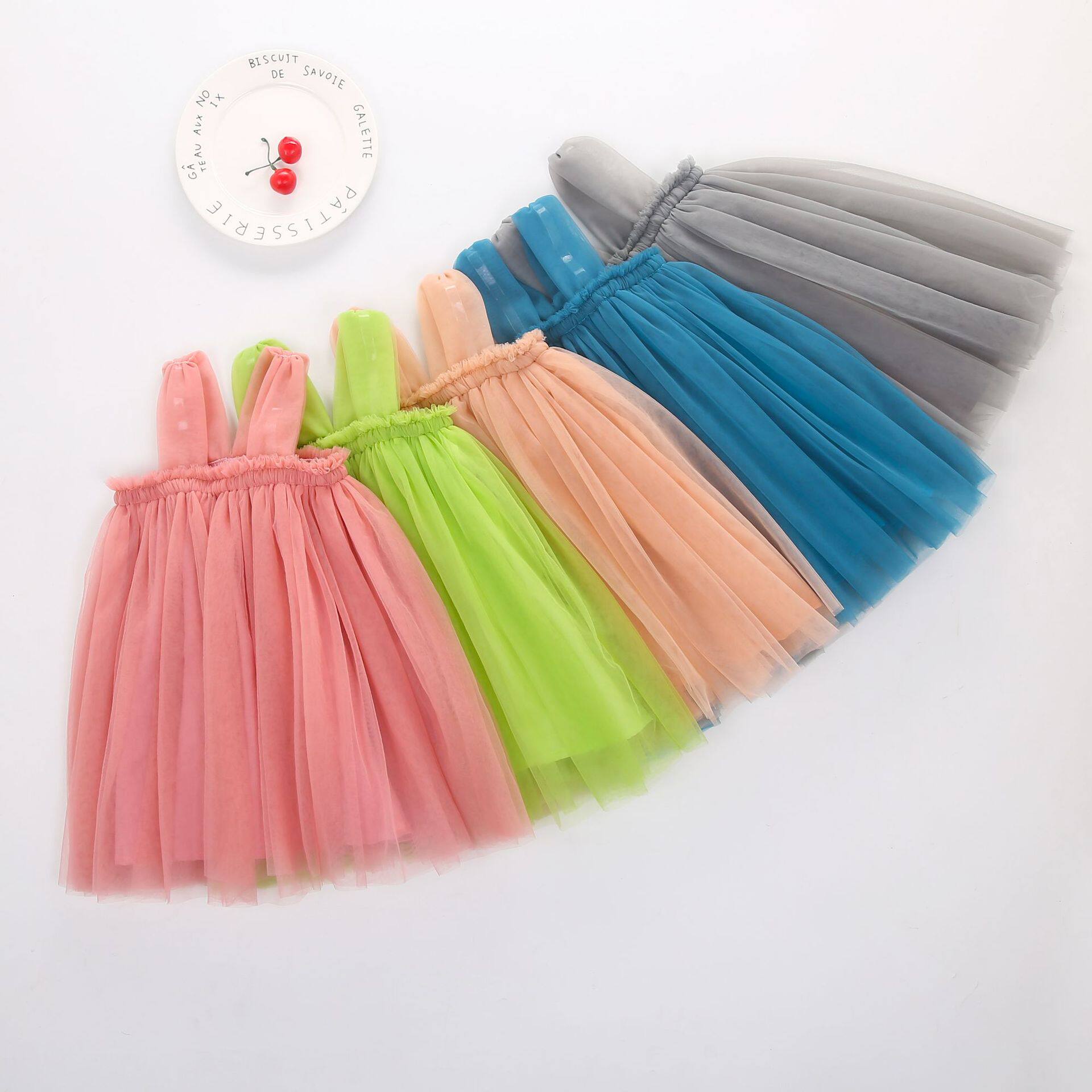 Foreign trade ins summer girl 100th birthday photo sling cotton mesh beach dress princess skirt fluffy dress short skirt