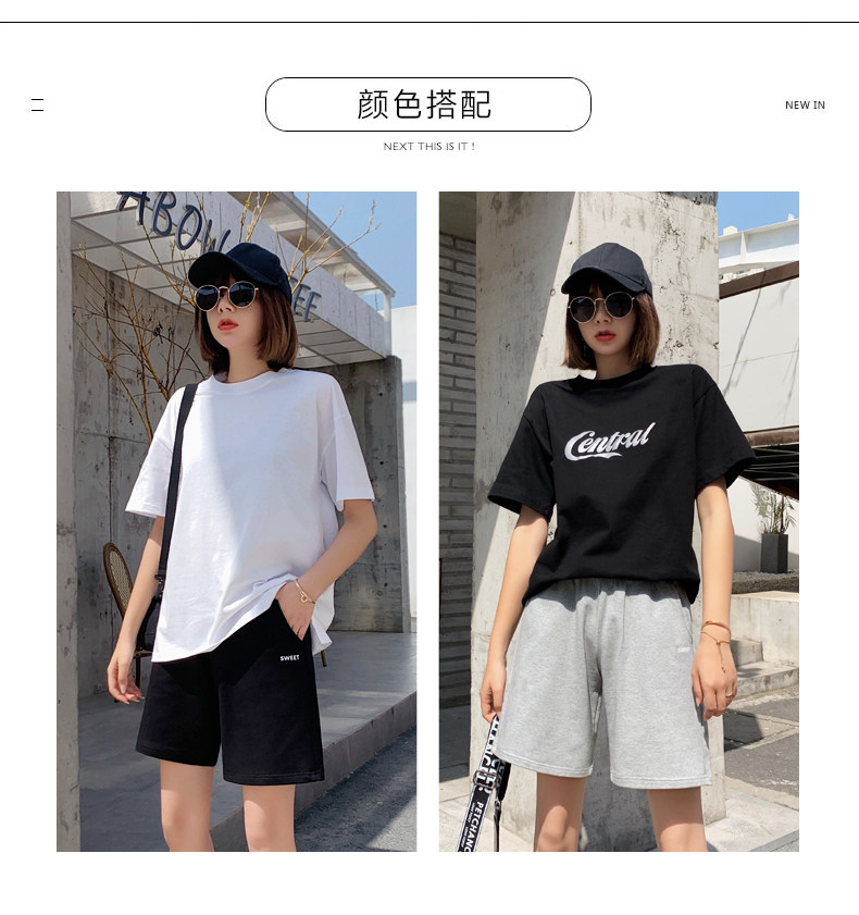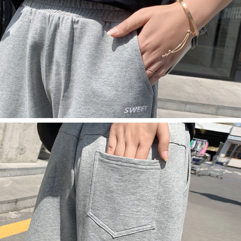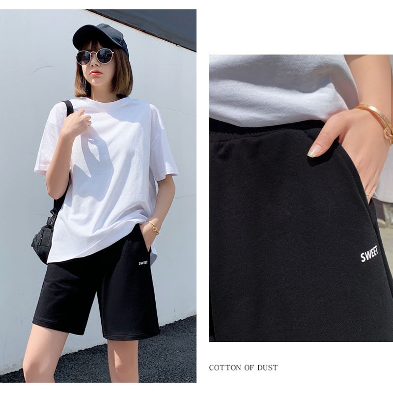 Five-point sports pants bf female summer loose wide-legged casual cotton thin section elastic waist black shorts ins tide