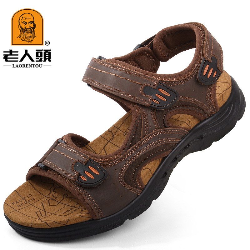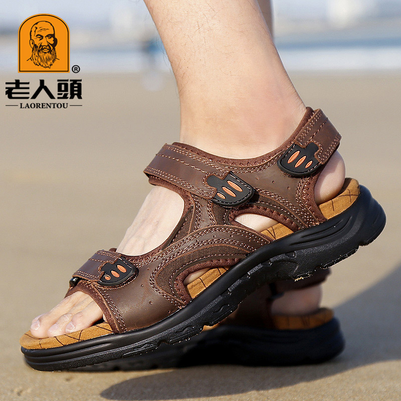 Old man's head sandals men 2022 Summer breathable non-slip Toes Cool Slippers Genuine Leather Casual Soft Bottom Outside Wearing Beach Shoes