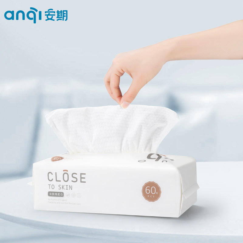Anzhi infant cotton soft towel Baby dry and wet dual-use disposable thickened cleansing cotton soft paper towel 60 pumping*3 packs