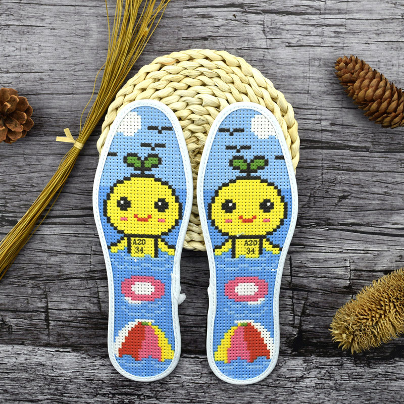 Children insole cross embroidered insole hand embroidered cartoon style all-cotton semi-finished product embroidered insole male and female-Taobao