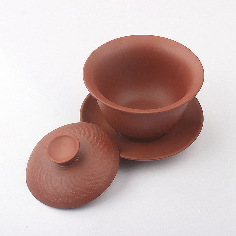 Yixing Original Mine Hand Style Purple Sand Cover Bowl Three Talent Tea Cup Toast Tea Bowl Single Creative Chinese Pure Color Kung Fu Household
