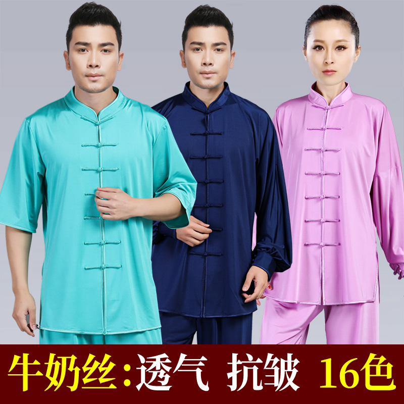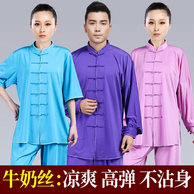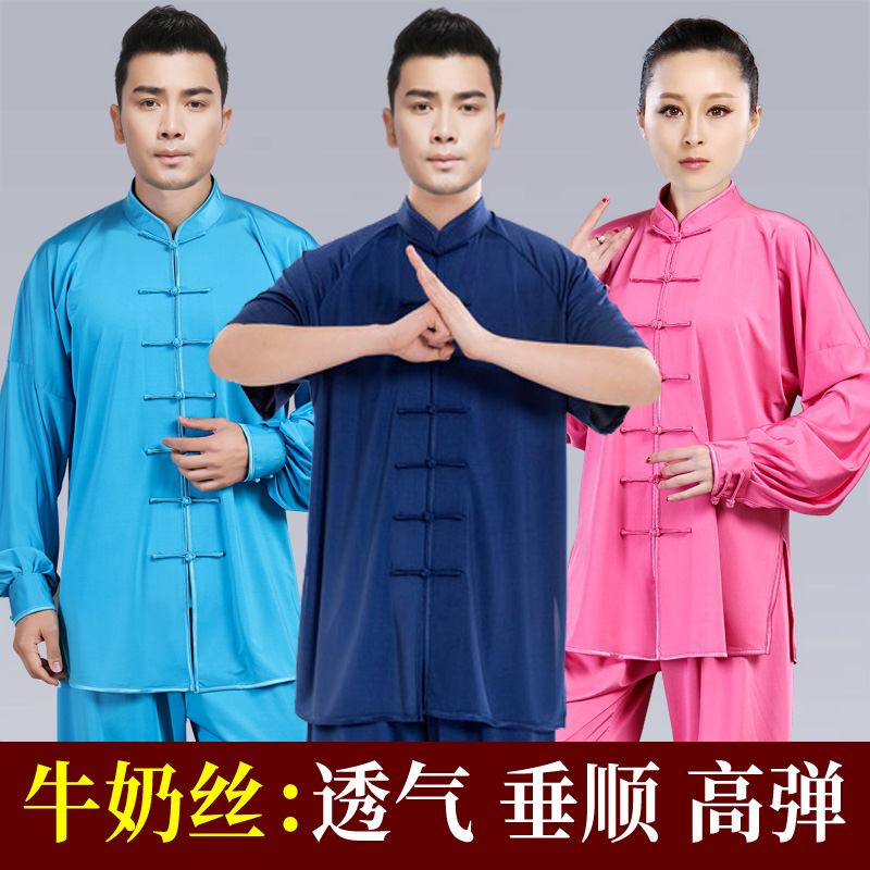 Tai Chi clothing milk silk spring, summer and autumn men and women long-sleeved short-sleeved Tai Chi practice clothing martial arts clothing ice silk performance clothing
