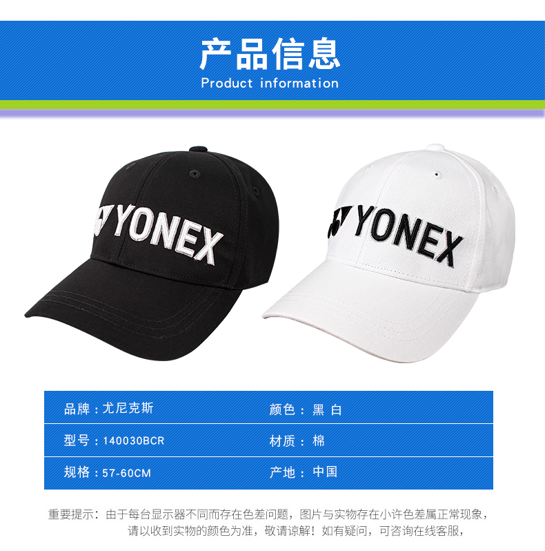 YONEX Yonex 140030 men's and women's caps peaked cap badminton golf outdoor sports tennis baseball