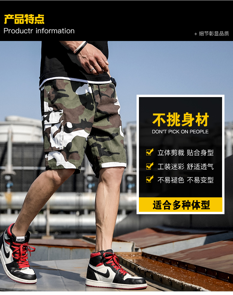 Large size camouflage shorts men's tide brand fat man loose plus fertilizer to increase 5 five-point pants special forces summer thin section khaki