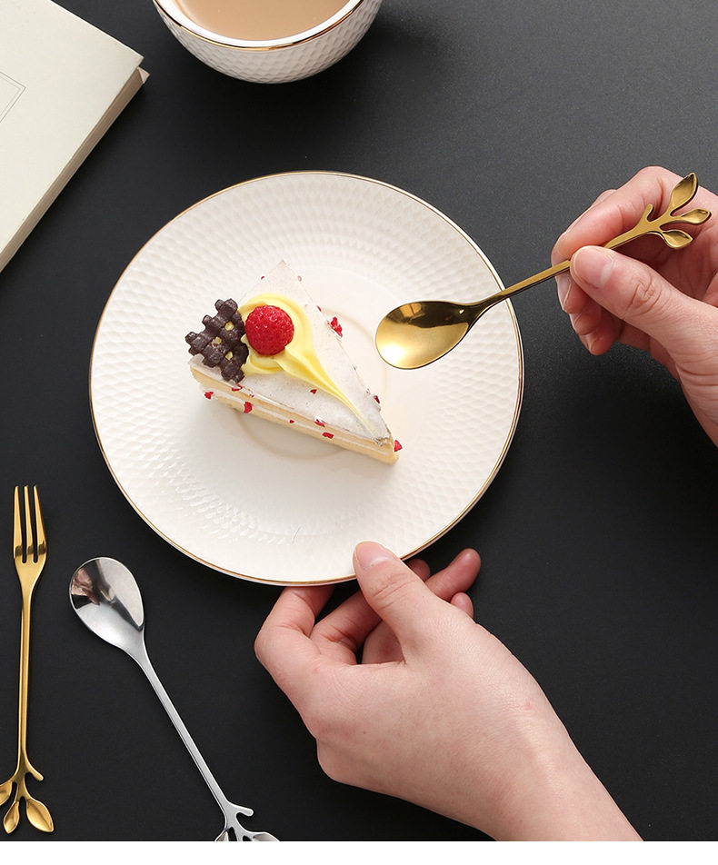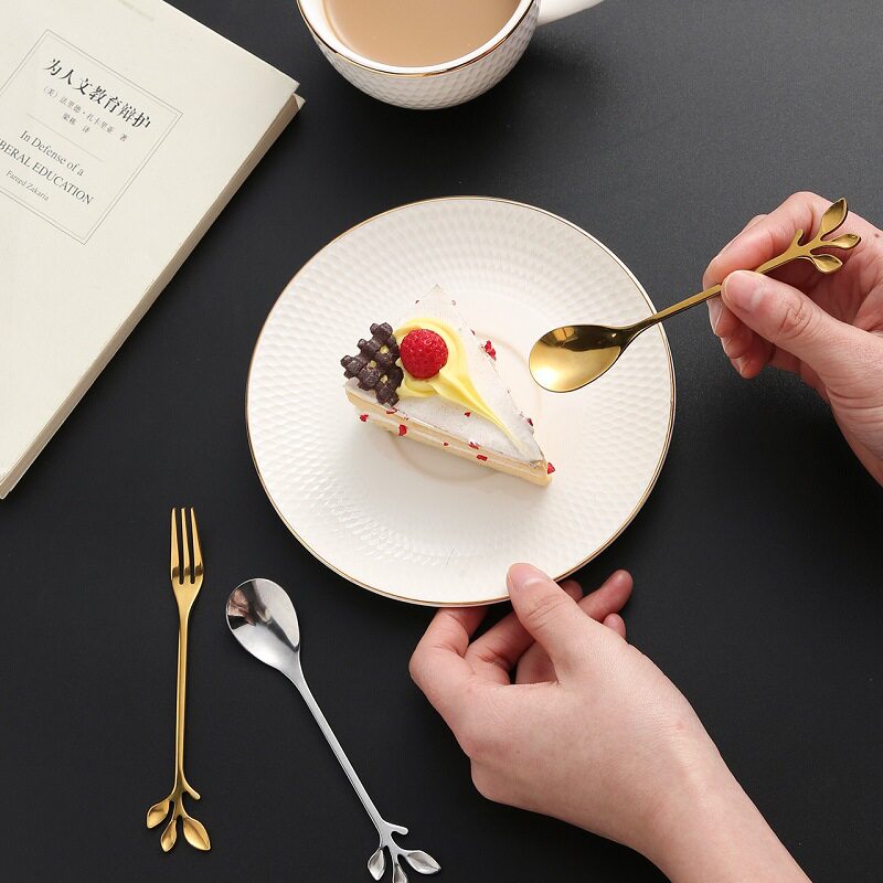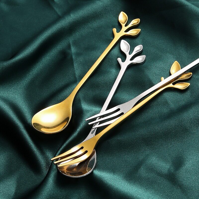 Leaf Dessert Fork Spoon Stainless Steel Coffee Small Spoon Nordic Style Fruit Fork Stirring Spoon Home Creative