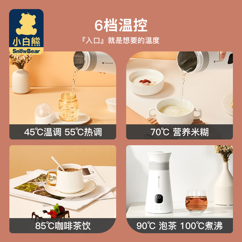 Small white bear portable thermostatic creamer baby bubble milk powder machine thermostatic hot water jug flushing milk warm water pot travel