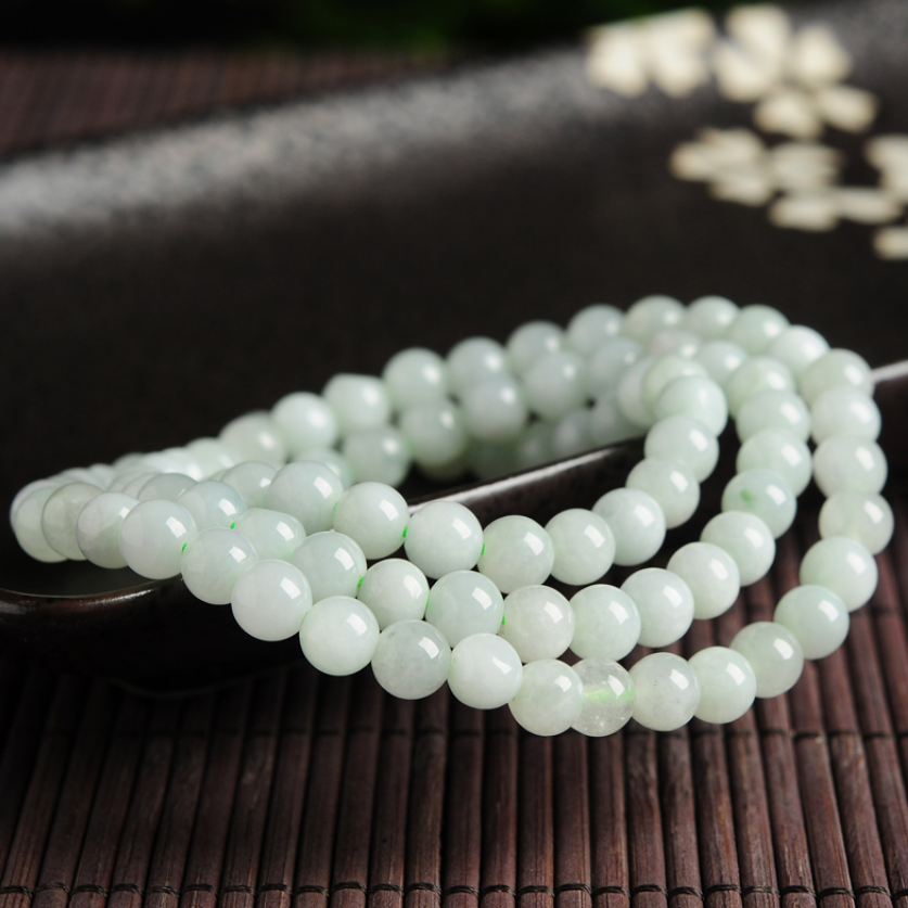 Myanmar A cargo jade round pearl necklace with female jade Jade Neck Accessories Natural Light Green Emerald Beads String Beads Jewelry
