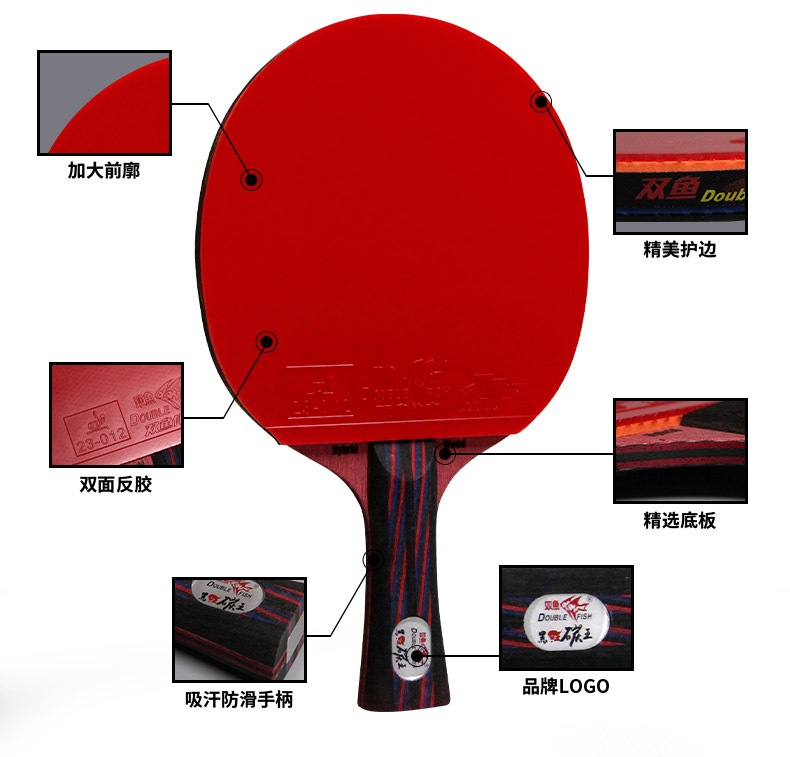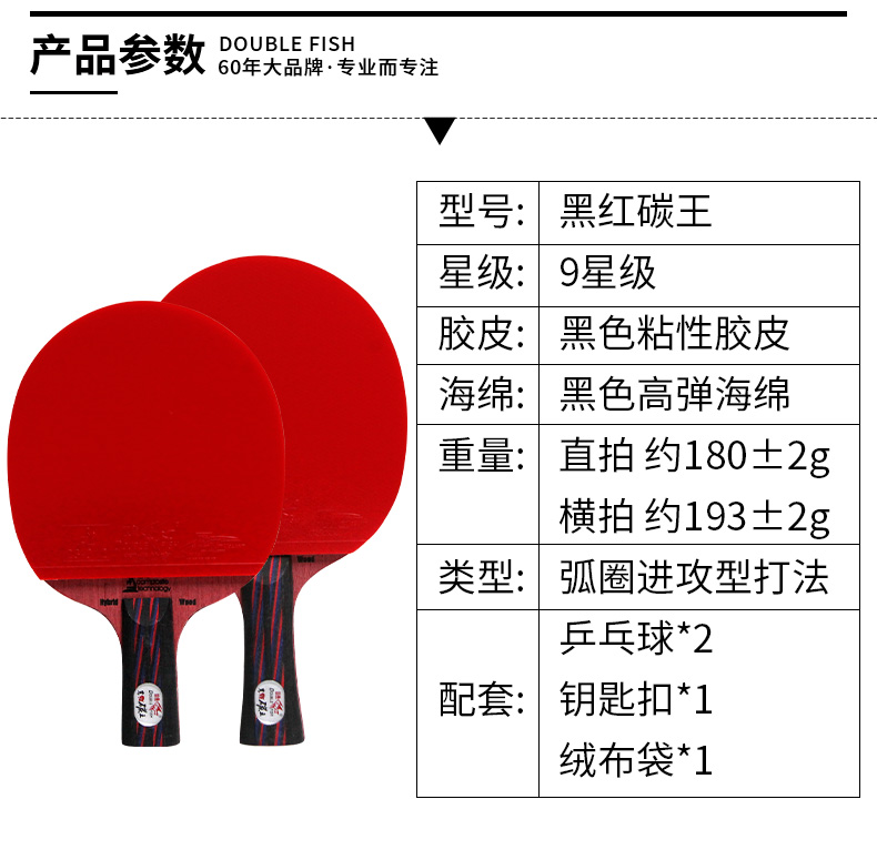 Double Fish Black Red Carbon King Nine Stars Table Tennis Racket Professional Class Single Beat Advanced Offensive type Straight Pat Bing Ping-pong Racket