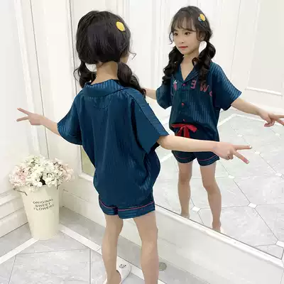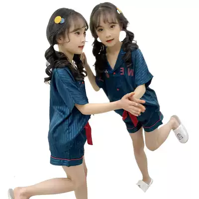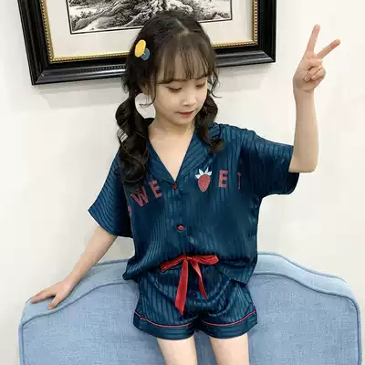 Children's ice silk pajamas Girls summer middle and large virgin girls silk thin baby cute air-conditioned home service suit