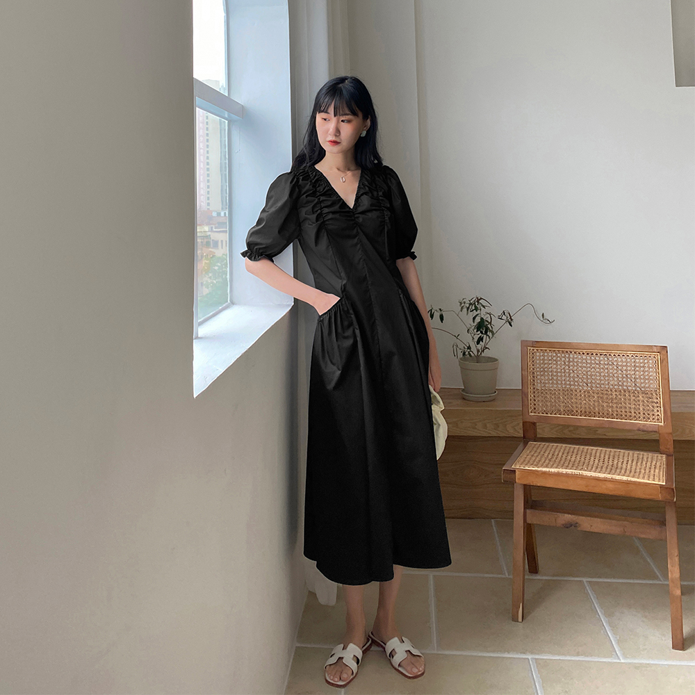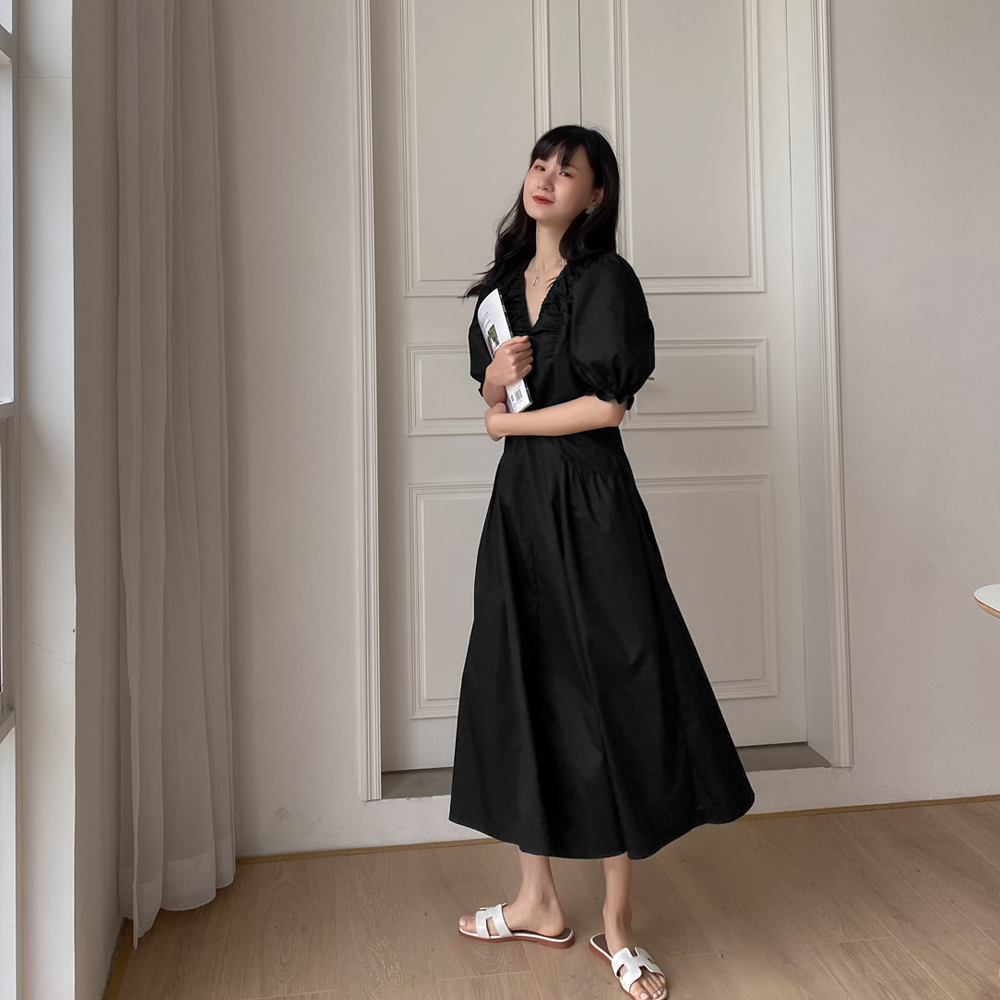 Love Rose Fat Code Women's Fat Costume French Black Long Dress Skin V-collar Dress Fat MM Dress Long Summer