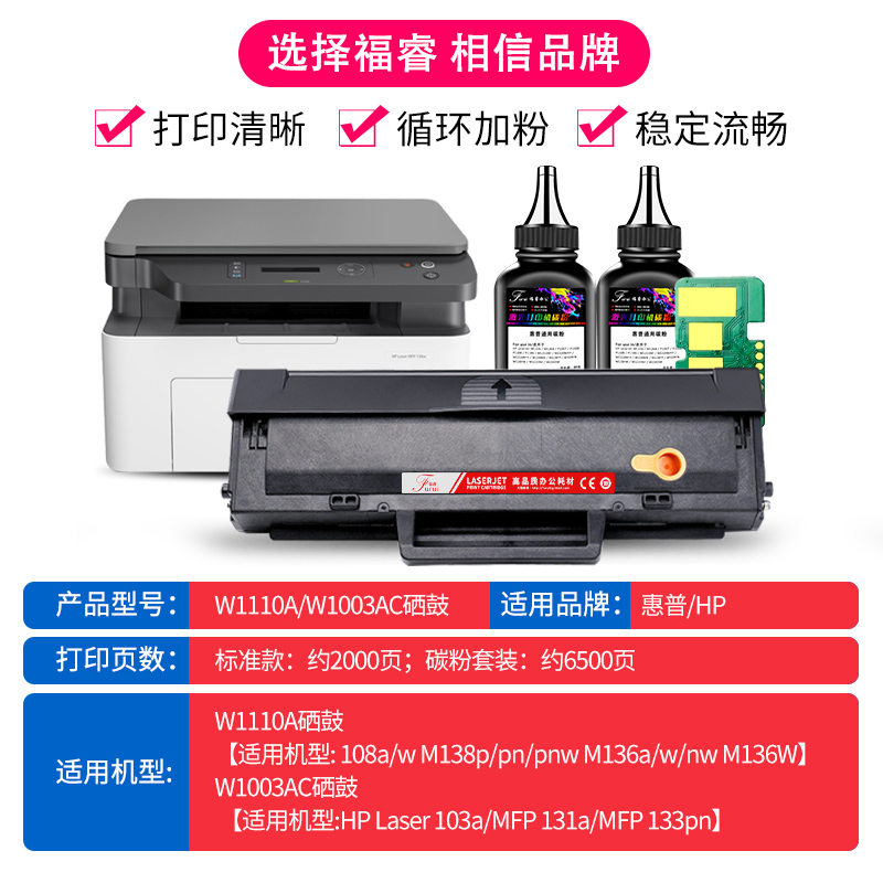 Fu Rui applies HP 136a toner cartridge hp110a 136w 136nw W1110A toner 138p 131pn pnw ink cartridge M103a