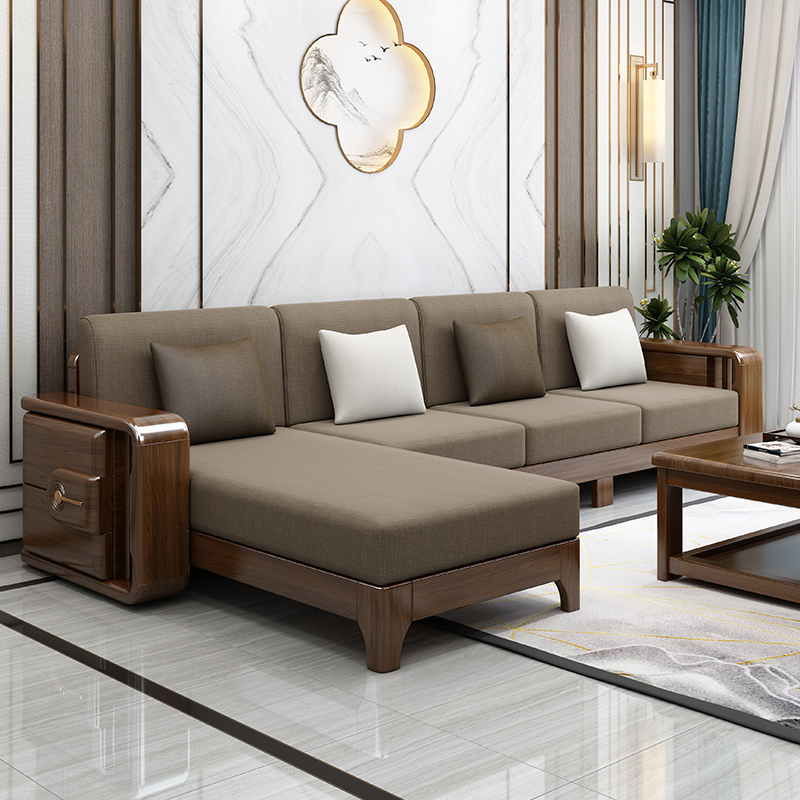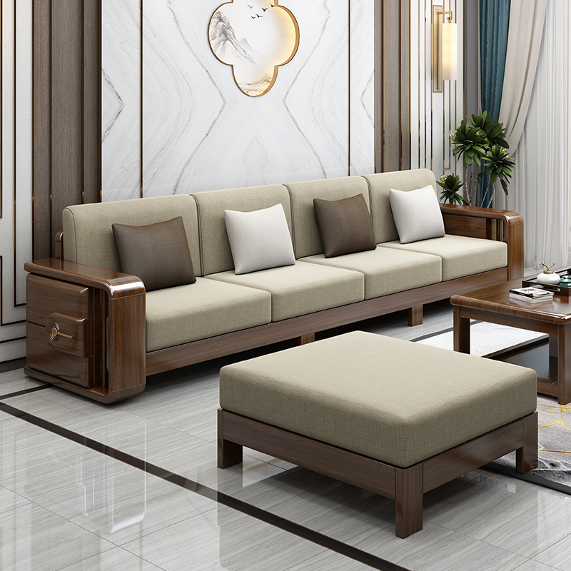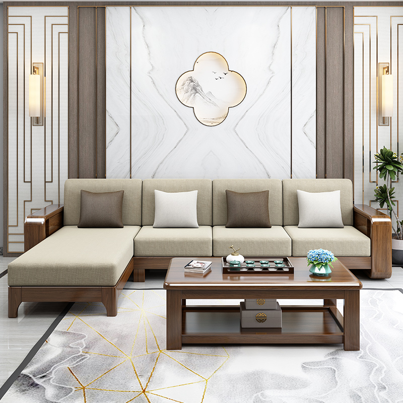Walnut solid wood sofa combination new Chinese style modern living room set furniture small apartment all wood fabric sofa