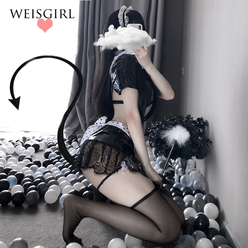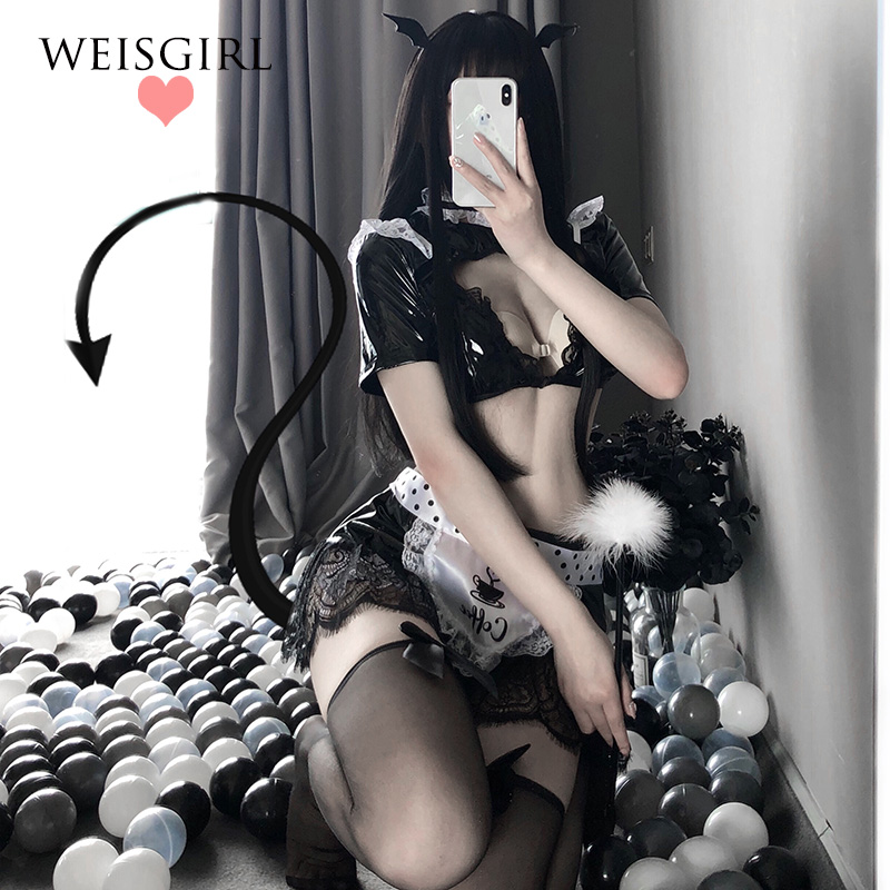 Weisgirl Japanese love rival sexy maid lingerie maid lace stitching patent leather bra seduction suit