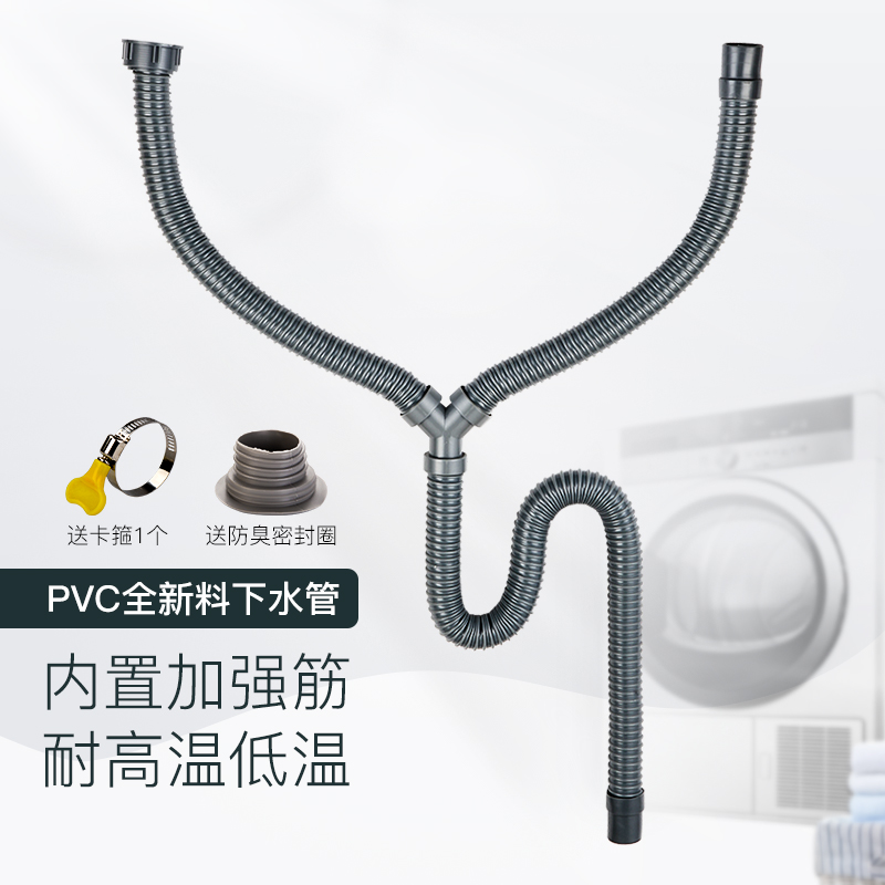 Washing pool drain pipe Washing machine mop pool basin drain pipe Two-in-one double-ended Y-type three-way extended hose