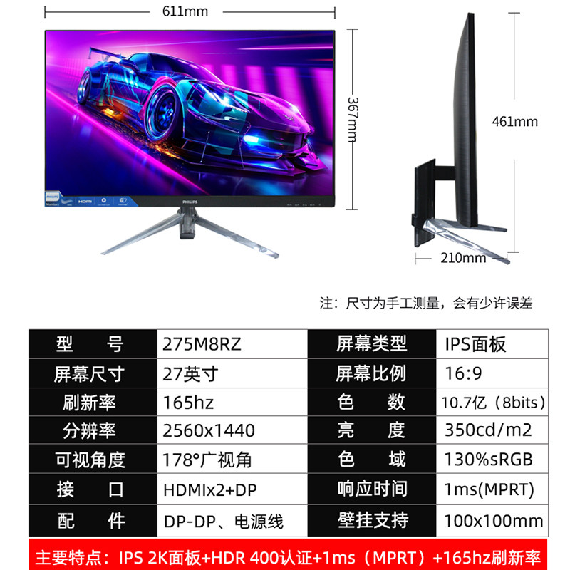 Philips 275M8RZ 27-inch 2K electric race 165Hz refresh IPS HD 1ms gaming computer screen
