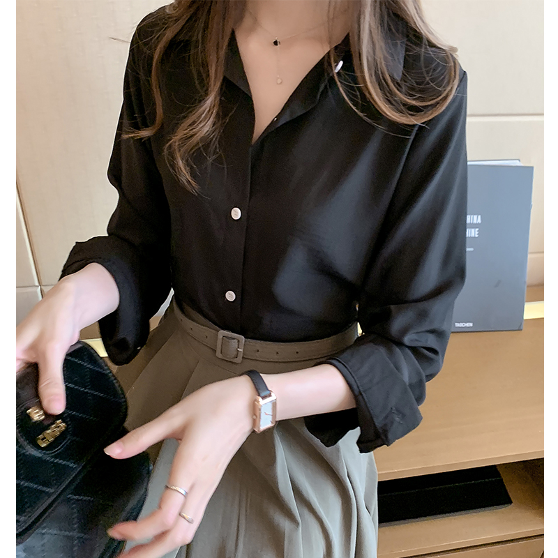 Snow spinning white shirt woman long sleeve design niche spring and autumn new Han edition loose professional temperament bottom shirt