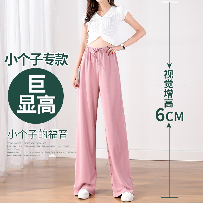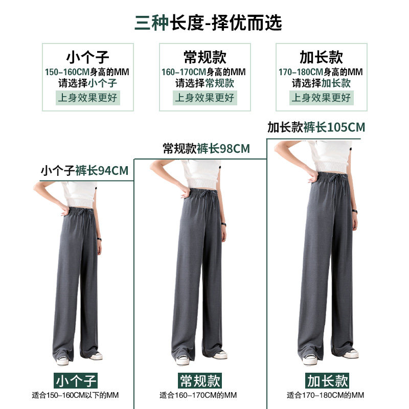 Cupro silk wide leg pants women's high waist drape summer thin section nine points small ice silk straight black sports pants