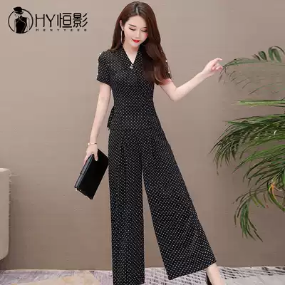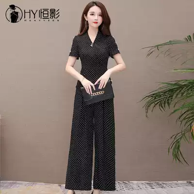 Your lady's Western style fashion popular 2021 new belly cover and age reduction fashionable wide-leg pants two-piece suit women's summer