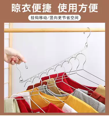 Eight-hole wardrobe storage hanger household stainless steel adhesive hook home finishing drying clothes chain magic clothes rack hanging