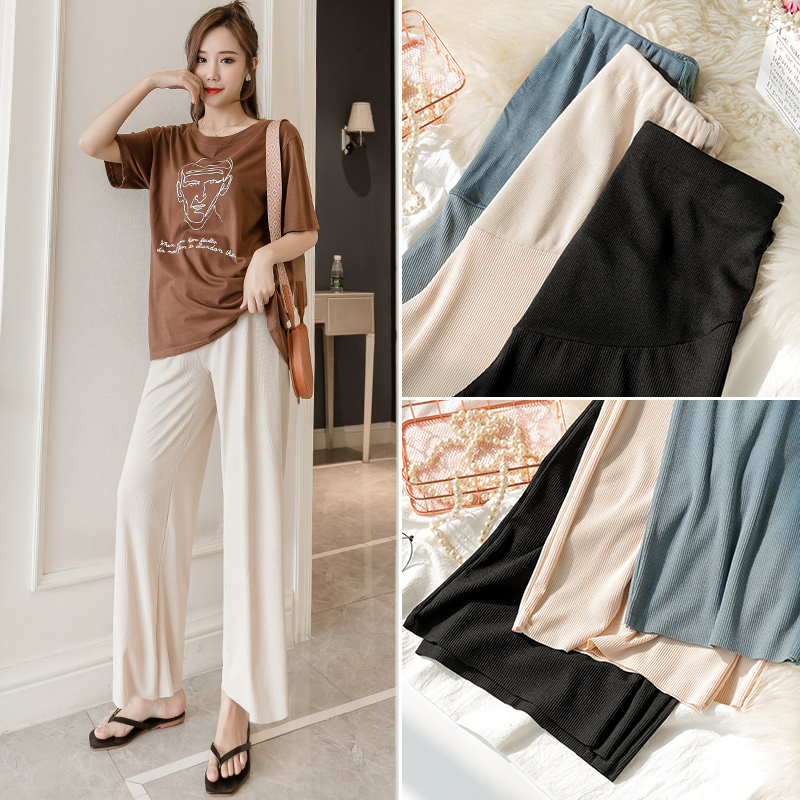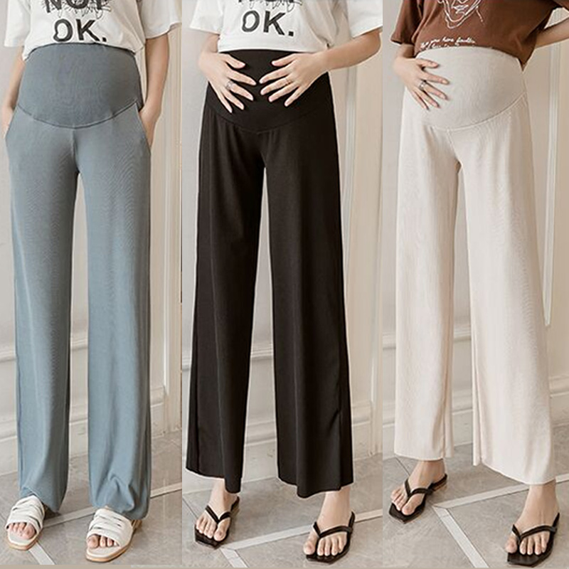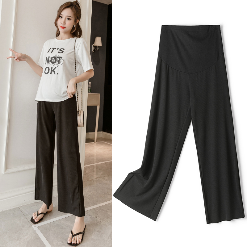 Maternity pants Spring and summer thin outer wear hanging trend mom ice silk wide leg pants Pregnant women inside pants summer loose nine points
