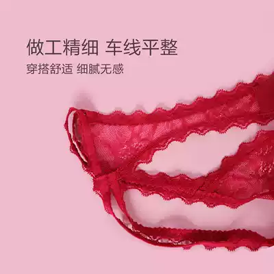 Miss Bobo lace sexy full transparent hollow incognito red thong underwear women's low waist summer thin section