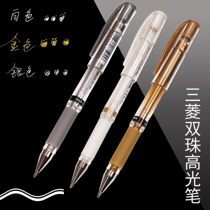 Mitsubishi highlight brush painting pen art student watercolor sketch special painting hand-painted anime gold and silver paint pen white