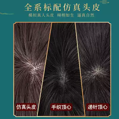 Natural Black (real hair mixed silk-simulation scalp) dark brown (real hair mixed silk-simulation scalp) natural black (real hair silk-hand woven top heart) dark brown (real hair silk-hand woven top heart)