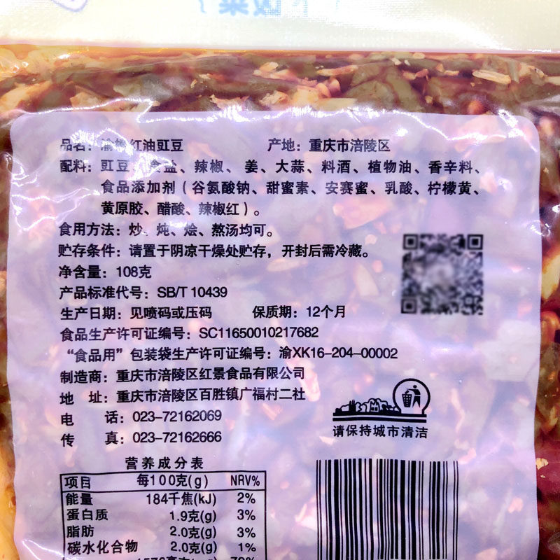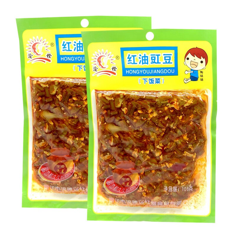 Fu Ling squeezed vegetable red oil cowpea down the rice dish 108g * 5 sacks of appetizers pickled pickle pickled pickled vegetables Chongqing Special