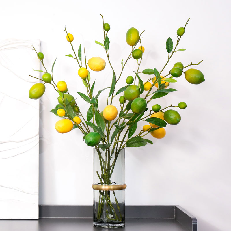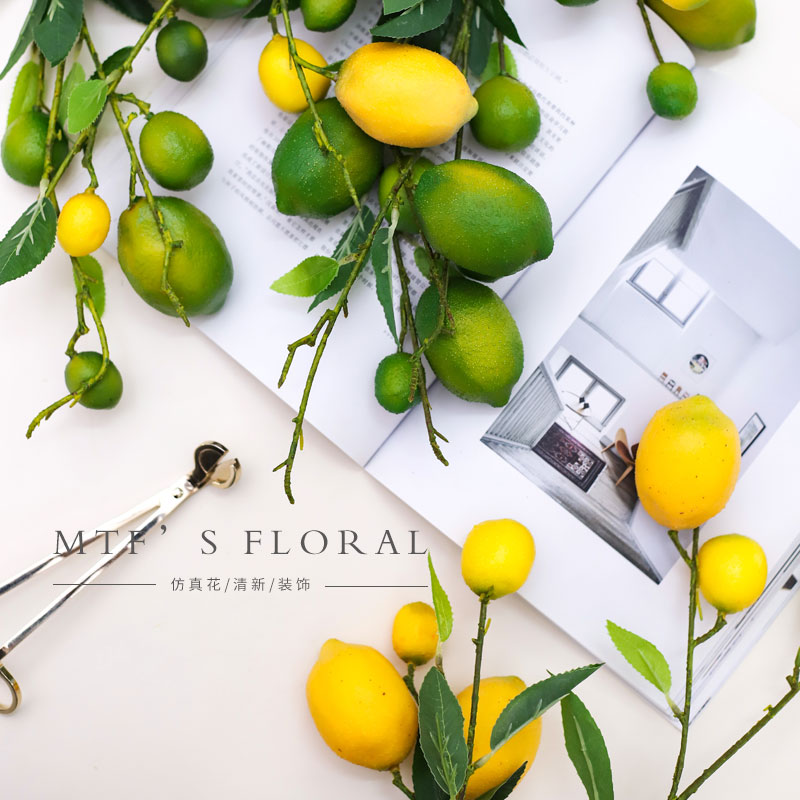 Simulation Lemon Yellow Fake Fruit Creative Pendulum Pieces Fruit Branches Long Branches Leaf Indoor Living Room Ground Frugino Decorations
