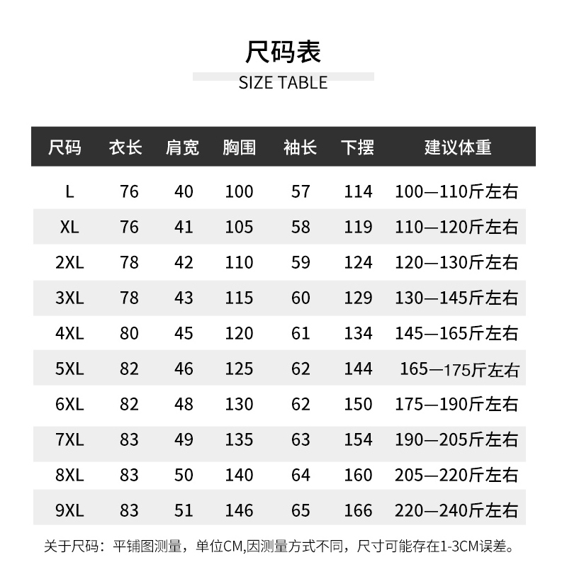 XL chest circumference of 105cm (recommended for 110-120 catties) 2XL chest circumference 110cm (recommended 120-135 catty) 3XL chest circumference 115cm (recommended 1