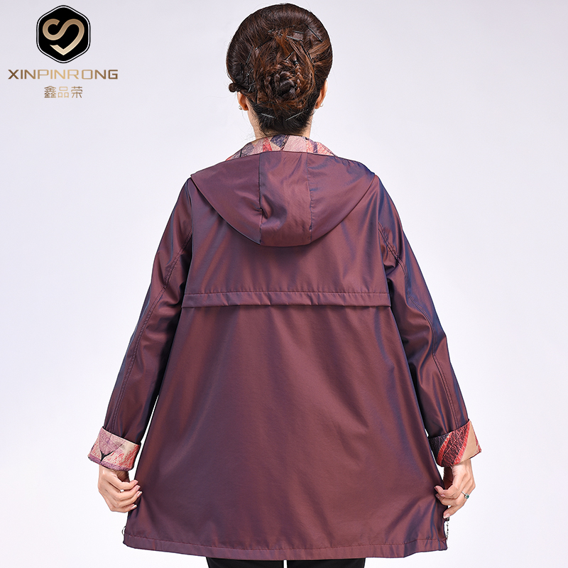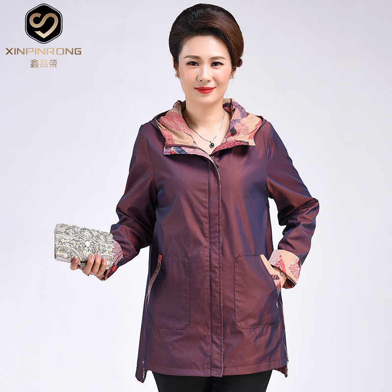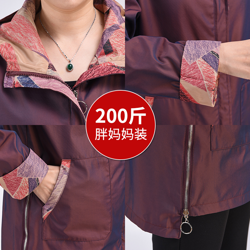 Middle-aged and elderly women's clothing plus fat increase code Even cap loose Two sides wear jacket 200 catty Mom loose blouse