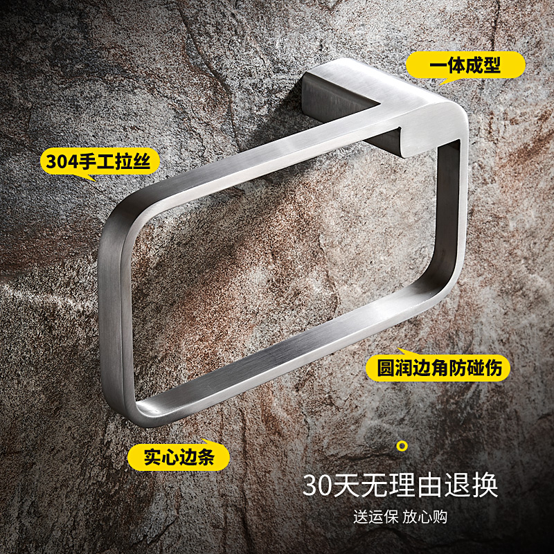 Towel ring 304 stainless steel towel ring hanging ring square hanging ring rubbing hand towel rack makeup room bathroom towel hook