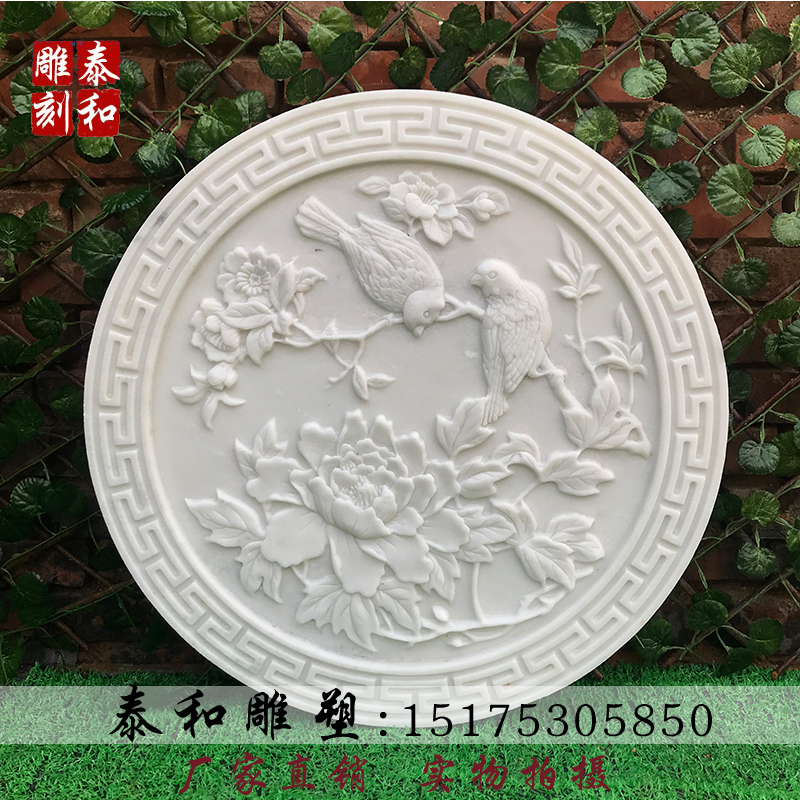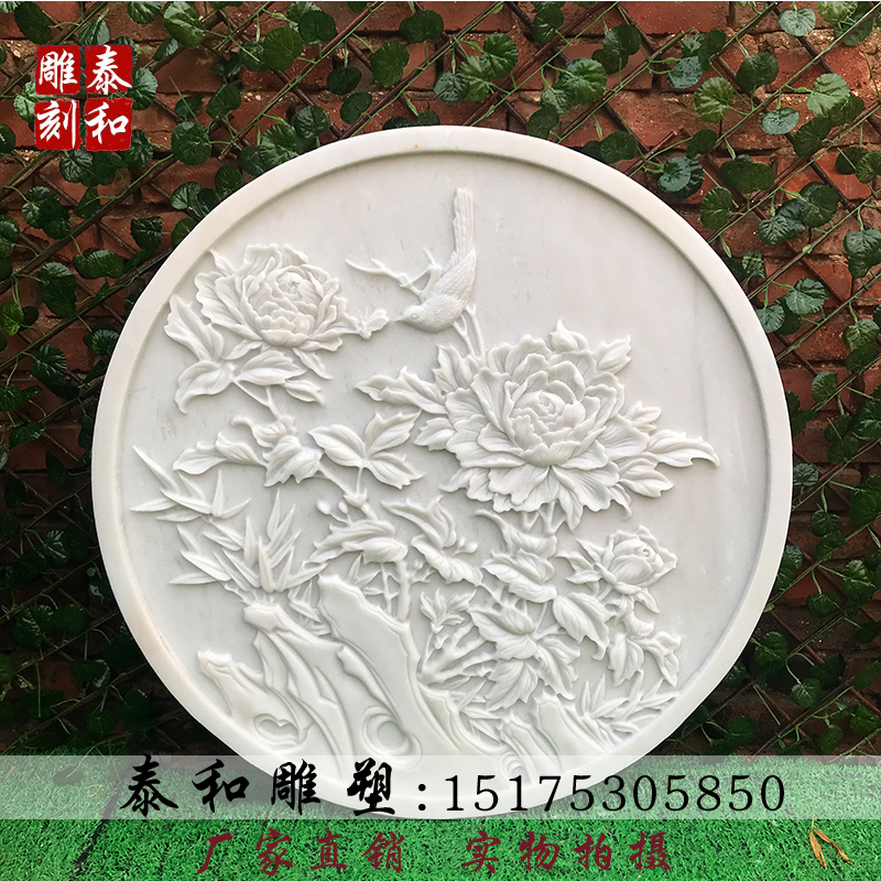 Stone sculptures flowers open rich and expensive reliefs Han white jade frescoed green stone sculptures Xuan guan Wufu Linmen Villa Chinese Screen Wall