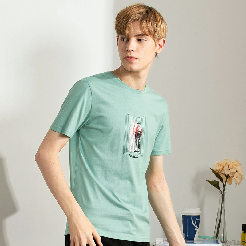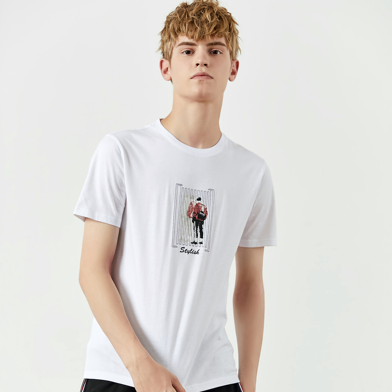Jeanswest men's spring and summer youth pure cotton round neck slim fit casual short-sleeved picture printed T-shirt