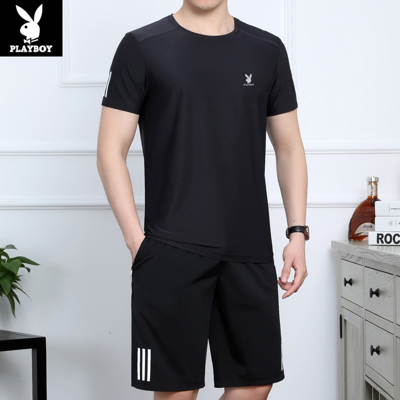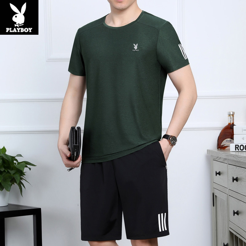 FlorPlayboy Middle-aged Dad Ice Silk Short Sleeve T-shirt Big Size Code Speed Dry Sports Suit Men Loose Casual 50% Pants