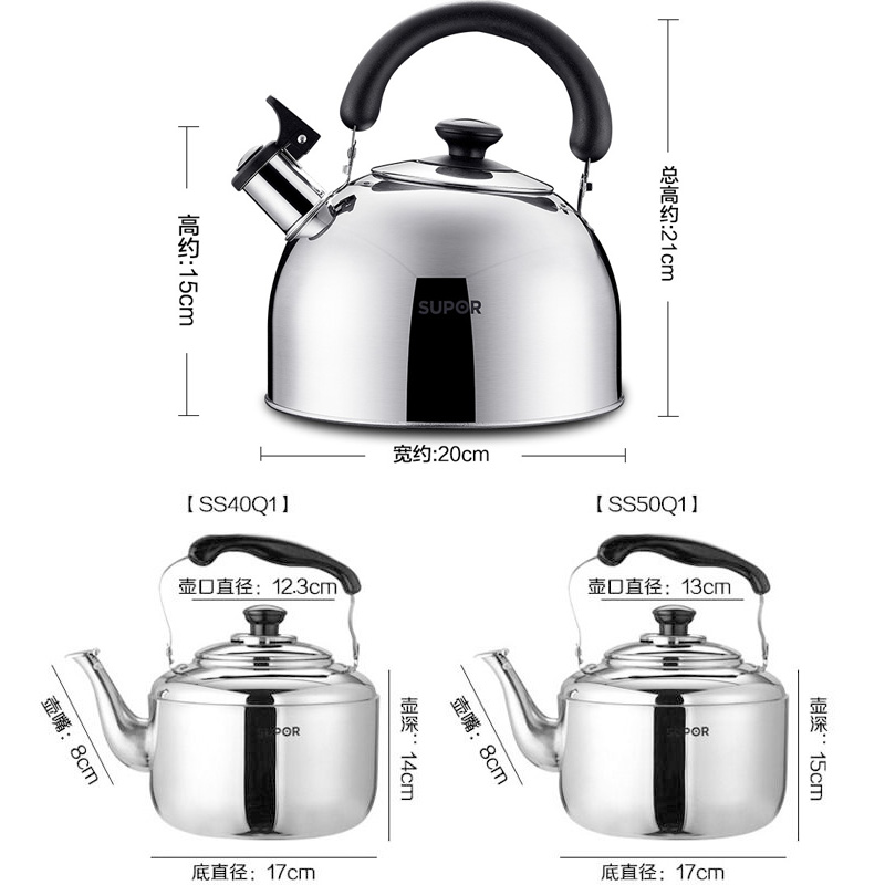 Suber kettle whistle 304 stainless steel kettle open flame gas induction cooker universal (3 4 5 liters)