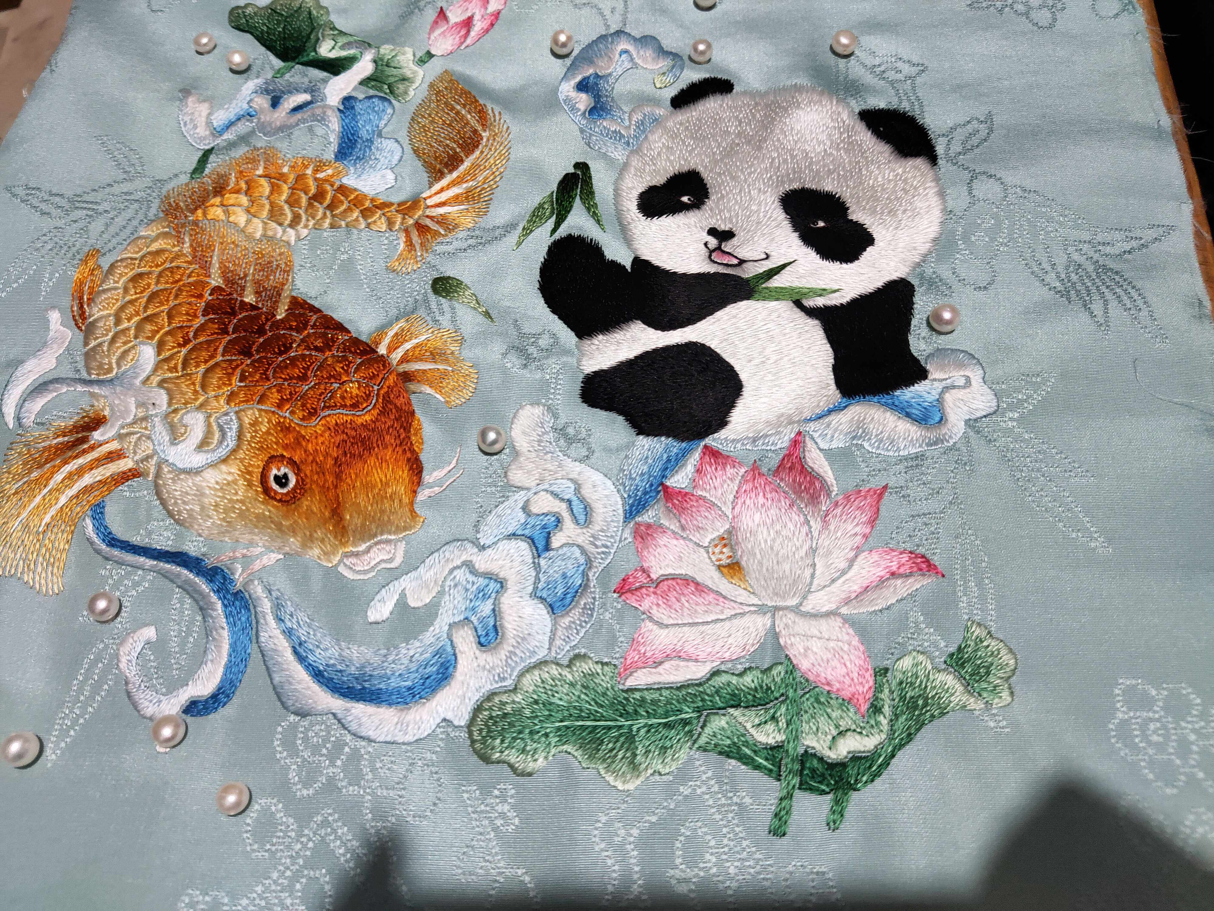 Ming-made Handmade Handmade Embroidered Panda carp Shu Embroidery Jedi is appreciated