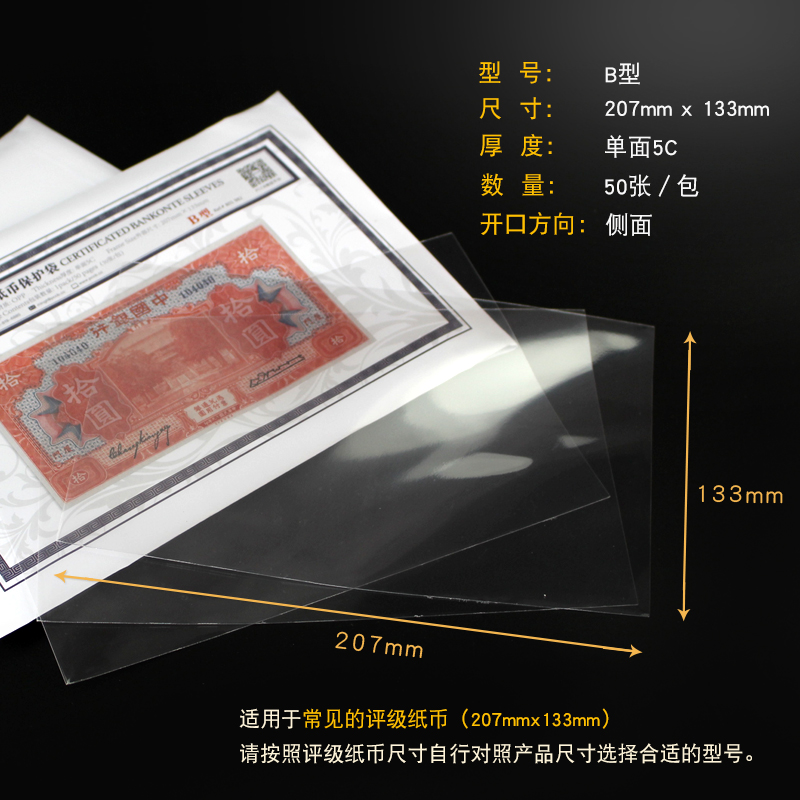 PCCB Mingtai PMG rating banknote protection bag professional grade transparent commemorative banknote collection bag 207mmx133mm