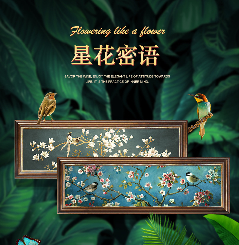 American Bedroom Bedside Decoration Painting Eu Style Sofa Background Wall Hung Painting Banners Hung Painting Plant Flowers Birds Mural Hotel Paintings