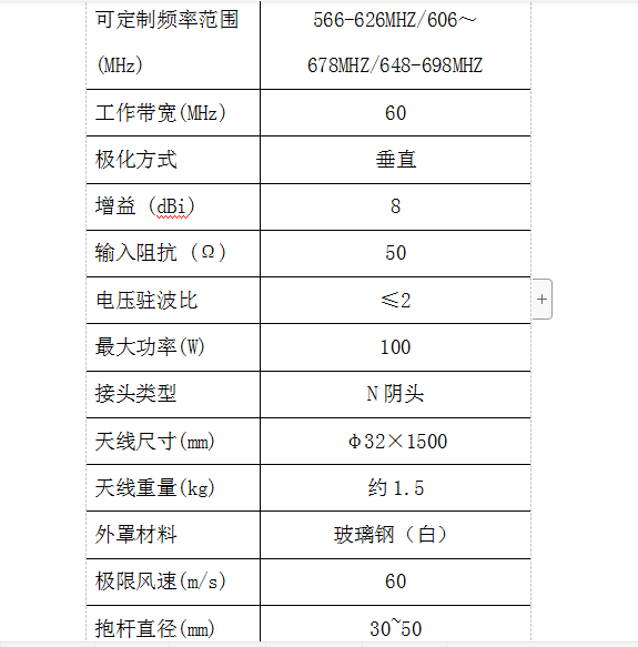 566-626MHZ fiberglass omnidirectional antenna on-board base station 8dBi high gain