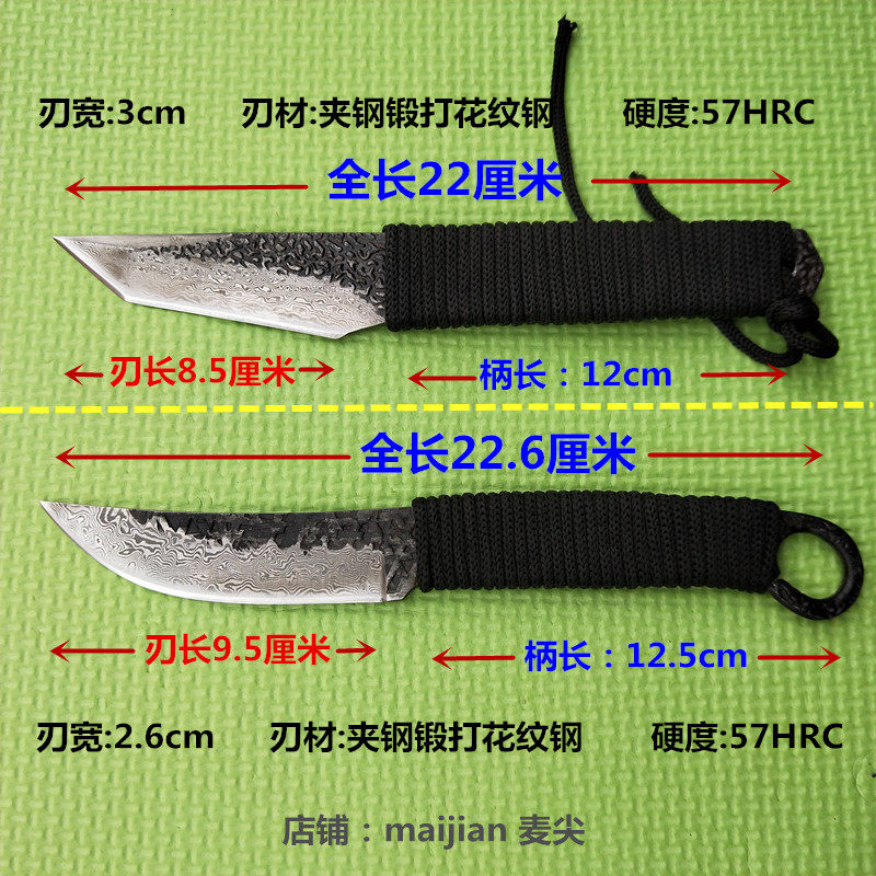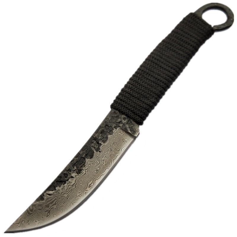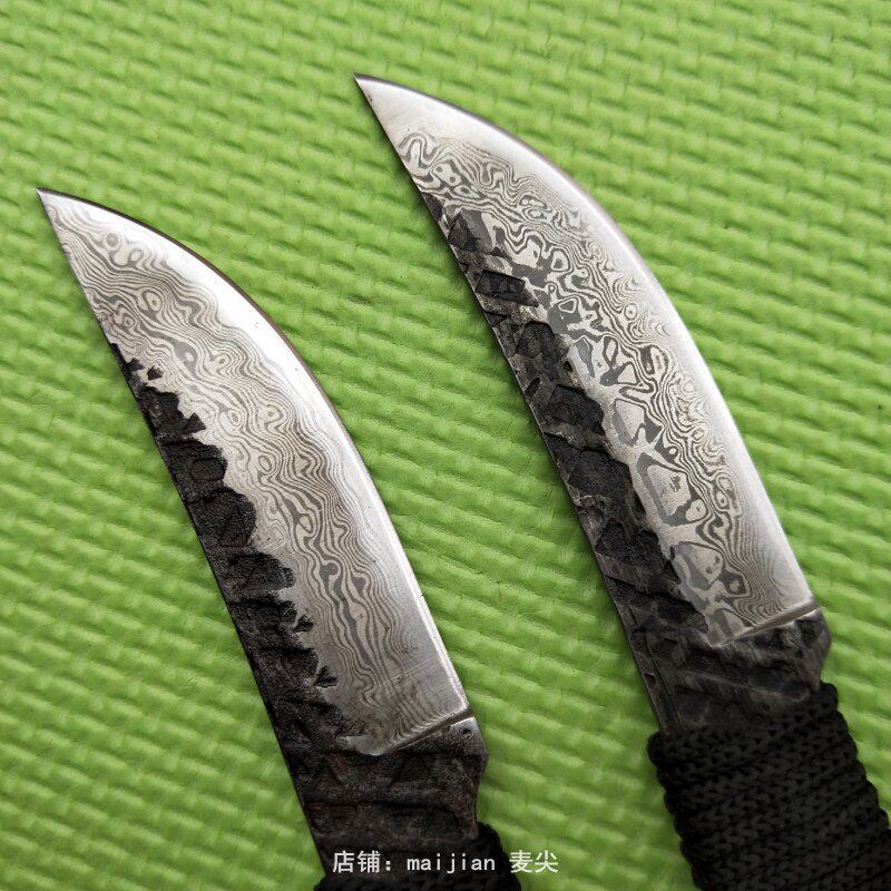 Handmade knife forging knife Damascus pattern steel small straight knife camping outdoor knife portable self-defense knife sharp